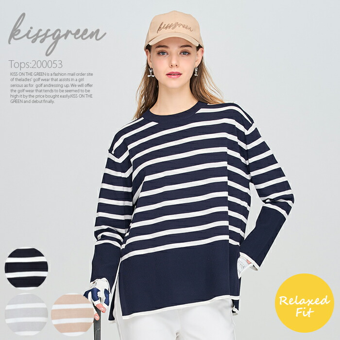 ゴルフウェア レディース ニット サラリとしたニット素材で着心地抜群の 軽いサマーニット ボーダー柄が爽やかな印象 長めの丈でヒップも隠せるので体型カバー