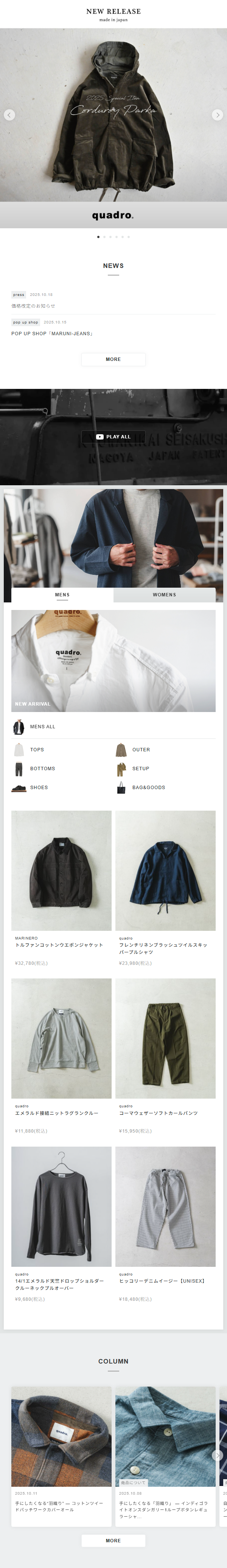 クオドロは、20代~40代の男女に人気の日本のアパレルブランドです。